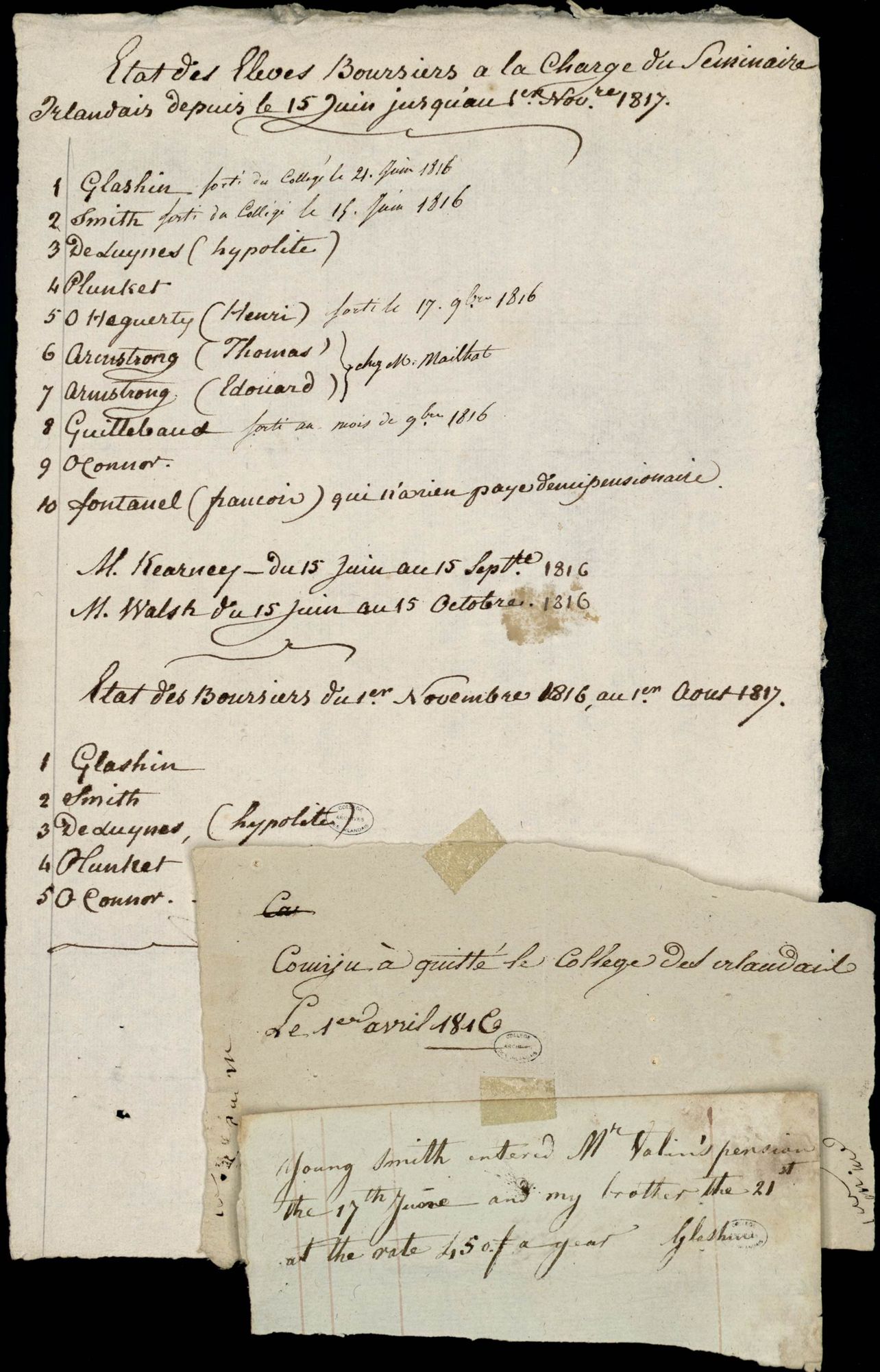 A2.e22, Etats des élèves boursiers à la charge du séminaire irlandais, 1817