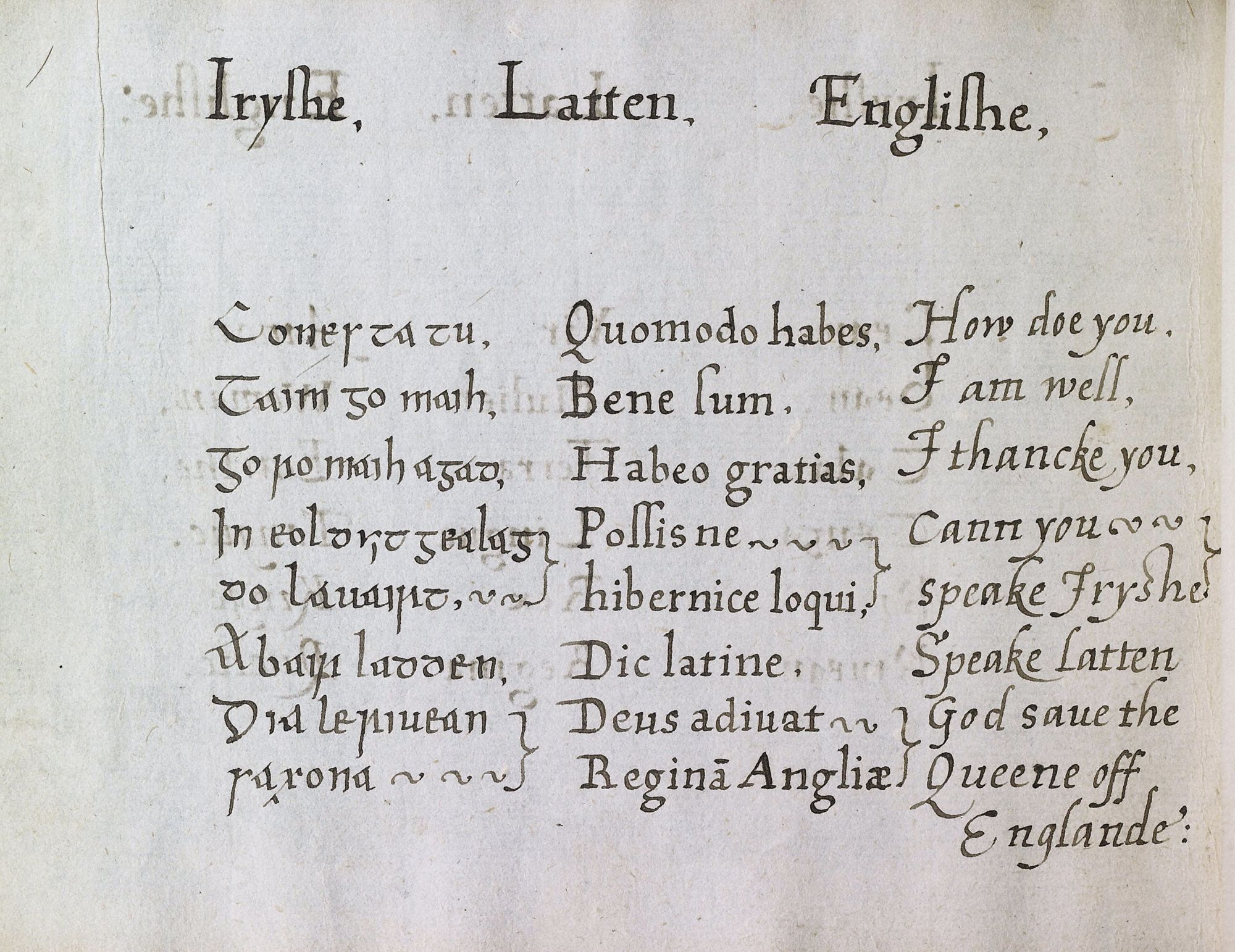 Cependant, la conquête de l'Irlande par les Tudor aux 16eet 17e siècles instaure une mission coloniale en Irlande et adopte une position plus radicale en remplaçant la langue et les coutumes irlandaises par celles des Anglais. Le célèbre poète élisabéthain Edmund Spenser aurait dit : “Si le parlerest irlandais, le cœur doit l'être aussi” (“The Speech being Irish, the heart must needs be Irish”).
