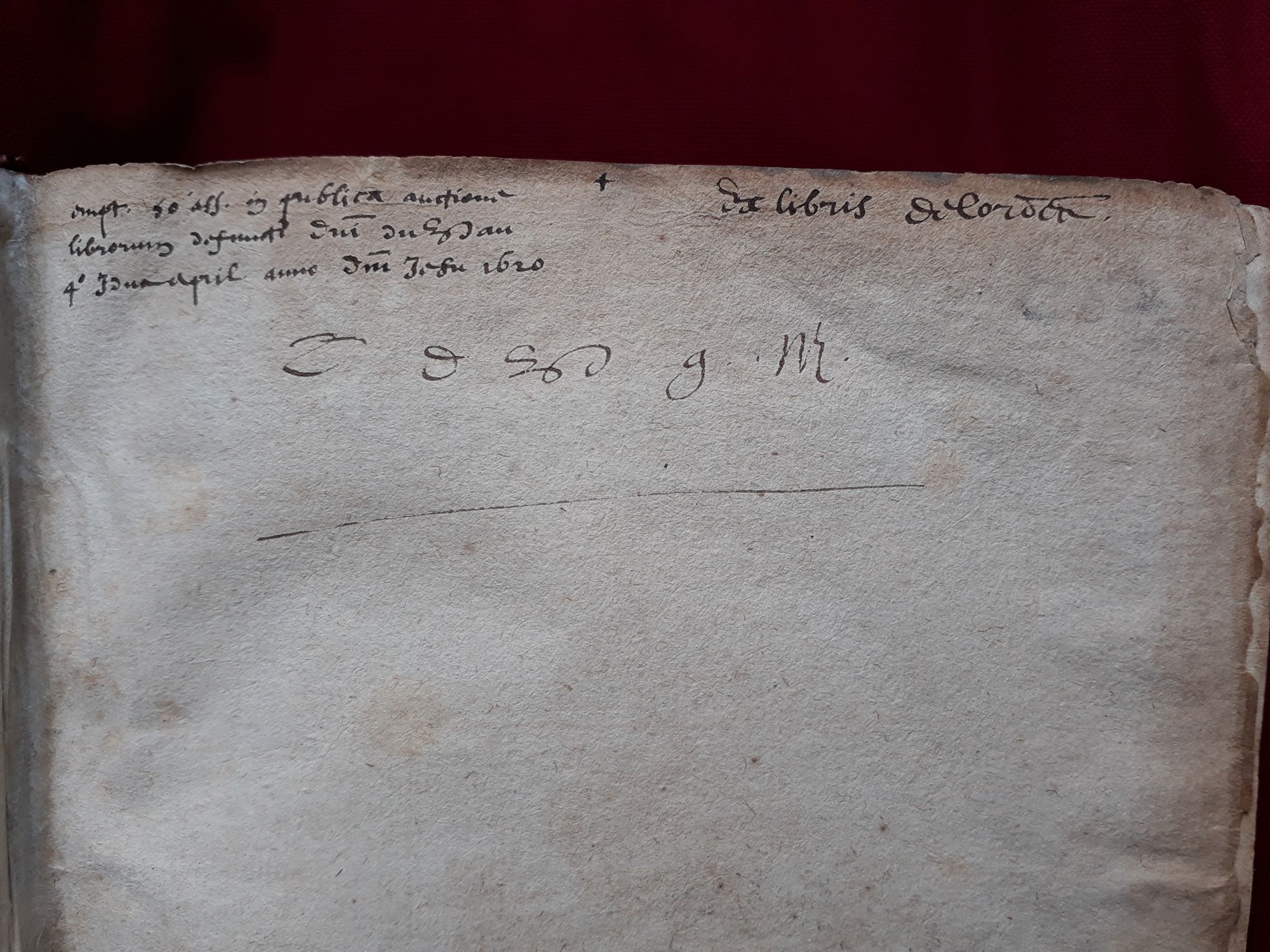 Le théologien catholique parisien du XVIe siècle, Henri Mauroy, fit relier le livre et y fit apposer son nom, suivi par Michel Denys qui ajouta son nom sur la page de titre avec le prix d’achat.