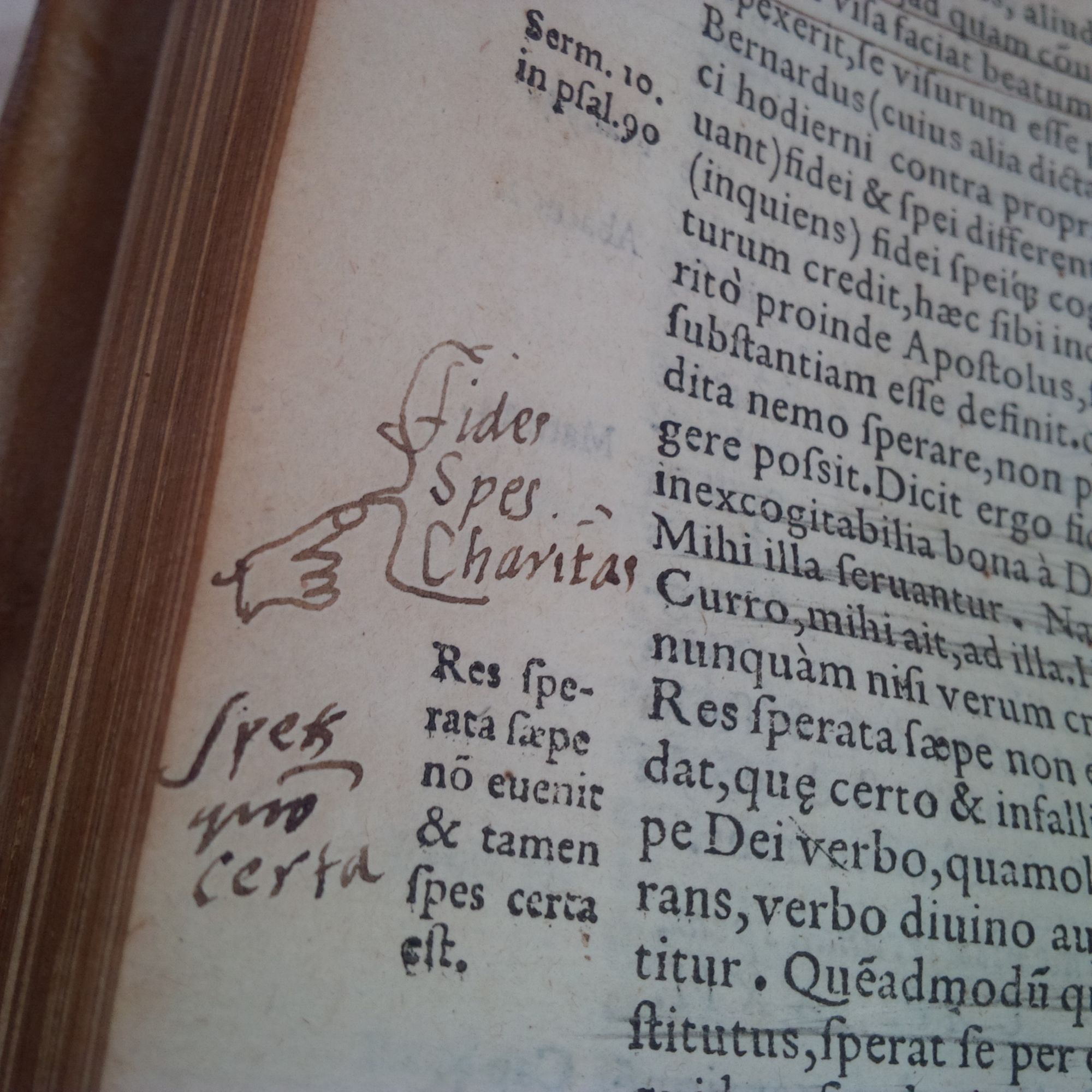 Dans la majorité des cas, ces marques de lecteurs ne sont pas particulièrement loquaces. Typiquement, on notait dans la marge les idées principales développées dans le texte imprimé pour en faciliter la consultation et retrouver aisément une citation ou un passage. On surlignait ou soulignait aussi des mots ou des lignes dignes d’intérêt et on attirait l’attention avec une petite manicule. Ces pratiques illustrent l’assiduité avec laquelle on consultait une édition et nous montrent ce qu’un lecteur de la Renaissance pouvait retenir lorsqu’il lisait.