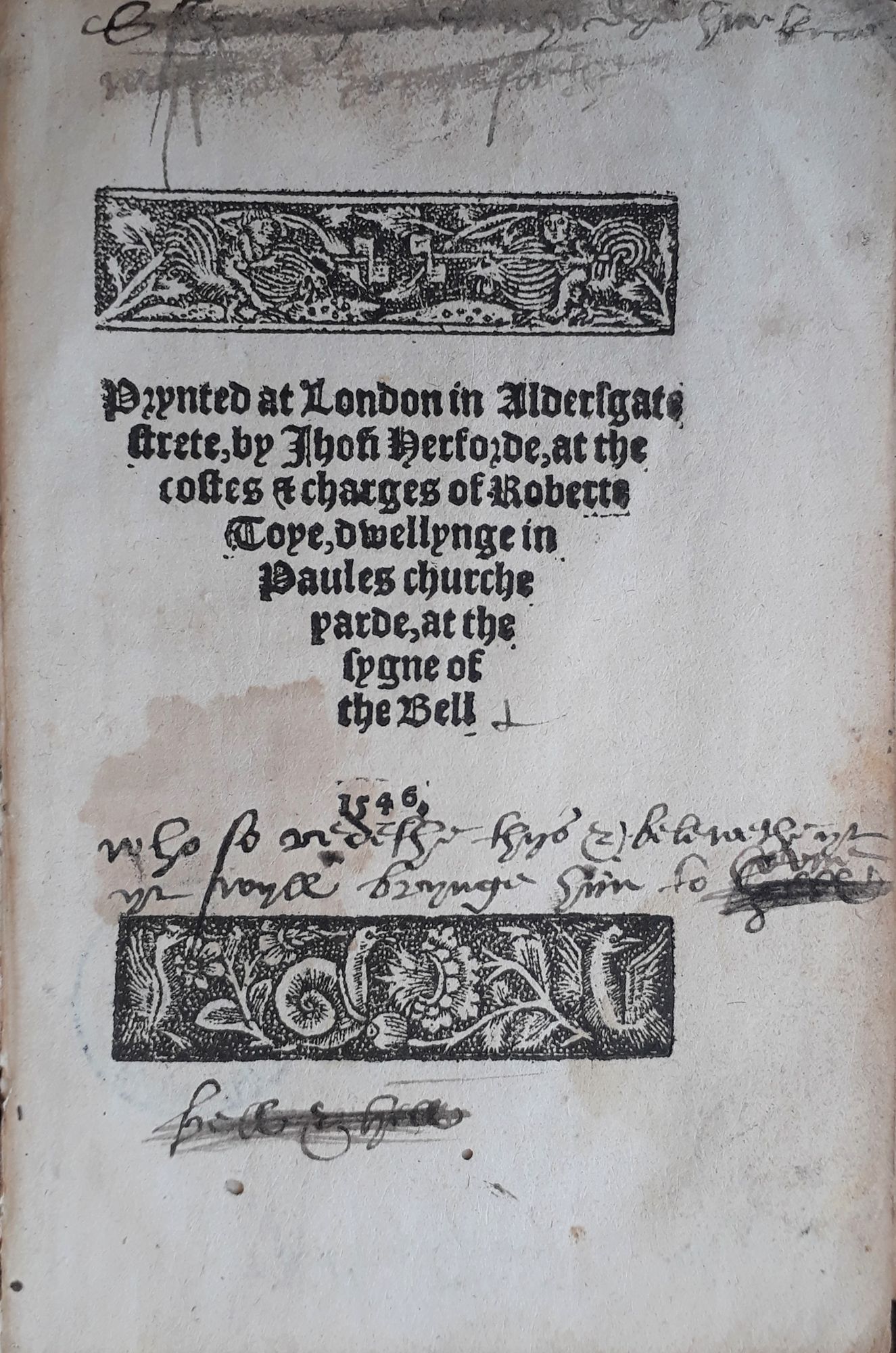 Dans une Europe déchirée par la montée du protestantisme, les controverses religieuses suscitaient de fortes réactions. Un lecteur (réformé) avertissait dans la marge que lire ou croire ce livre enverrait le lecteur en enfer. Plus tard, un lecteur (catholique) biffa le dernier terme pour y substituer le mot « paradis » (« Who so redethe thys and belewethe yt, yt wyll brynge him to hell »).