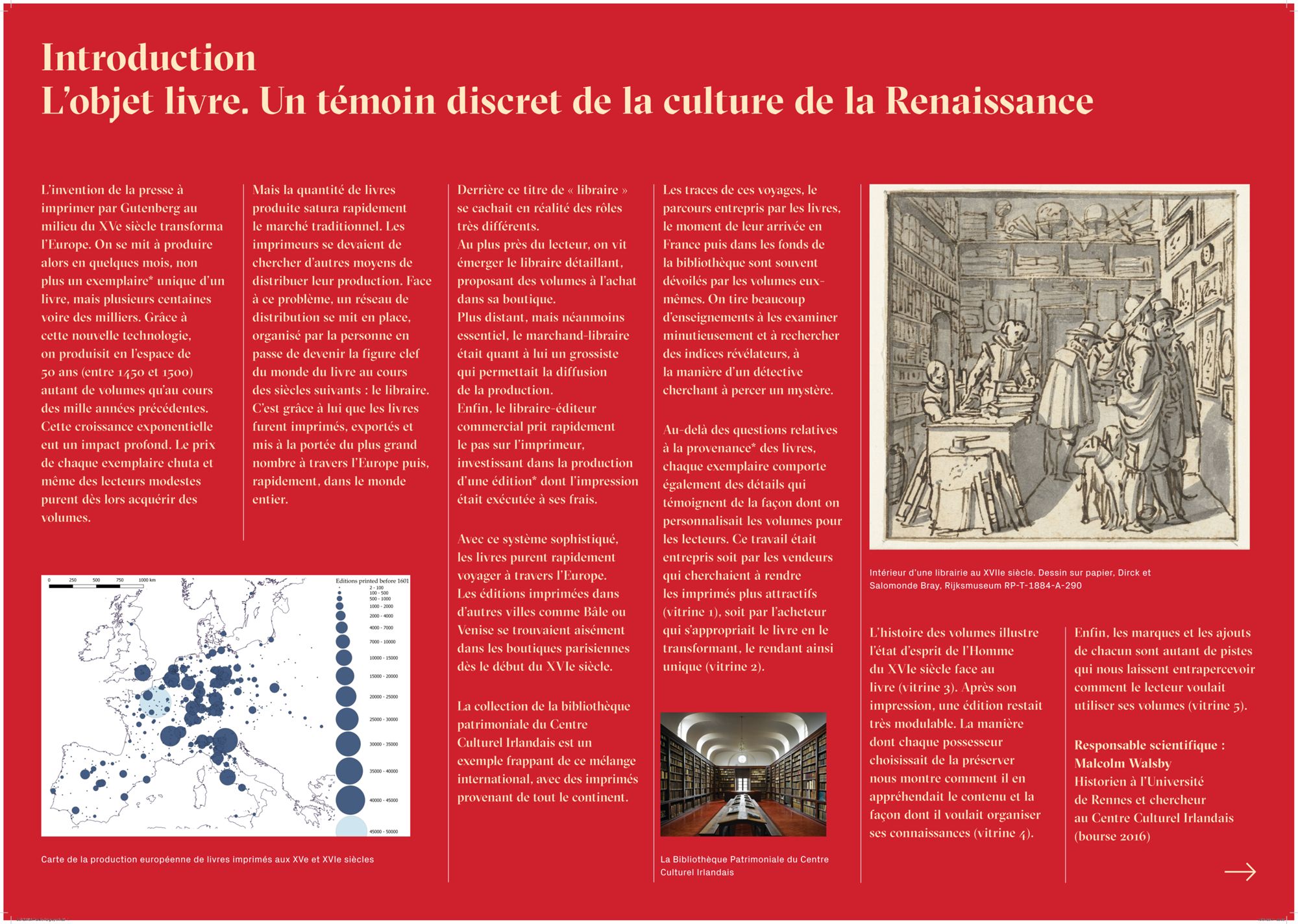Reconstitué grâce aux marques, ex-libris et tampons divers, ce long parcours nous révèle comment chaque volume doit son existence aujourd’hui à l’intérêt et à la vigilance de ses possesseurs successifs.