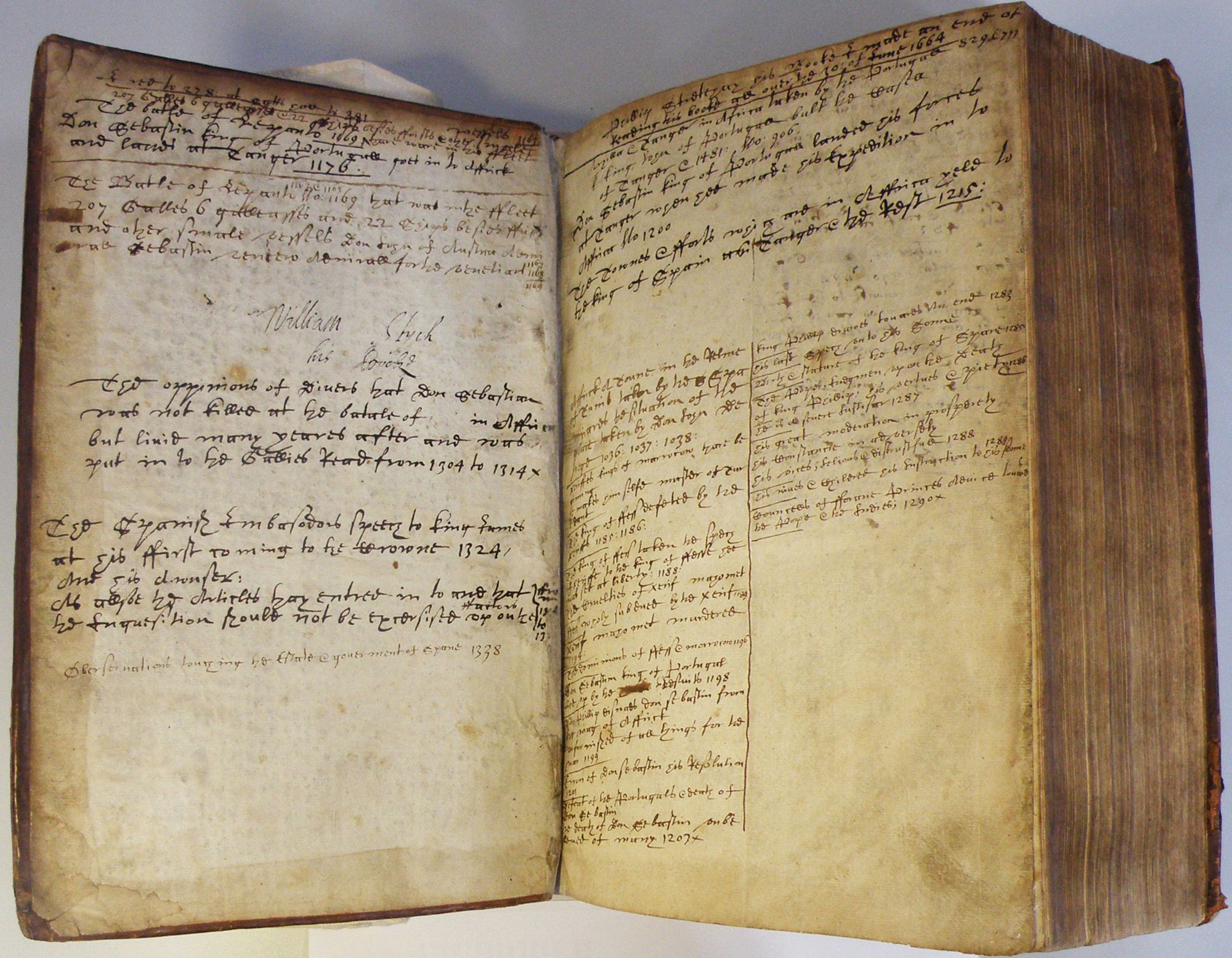 Dans ce Generall historie of Spaine, un gigantesque index s'étend sur une vingtaine de pages reliées au début et à la fin de l'ouvrage. L'histoire d'Espagne y est redistribuée par thèmes, les numéros de page clairement indiqués à la fin de chaque entrée. L'organisation des entrées et la variation des plumes et des encres suggèrent que la lecture n'a pas été parfaitement linéaire. Le lecteur est sans doute revenu en arrière ou a complété son index lors de relectures.