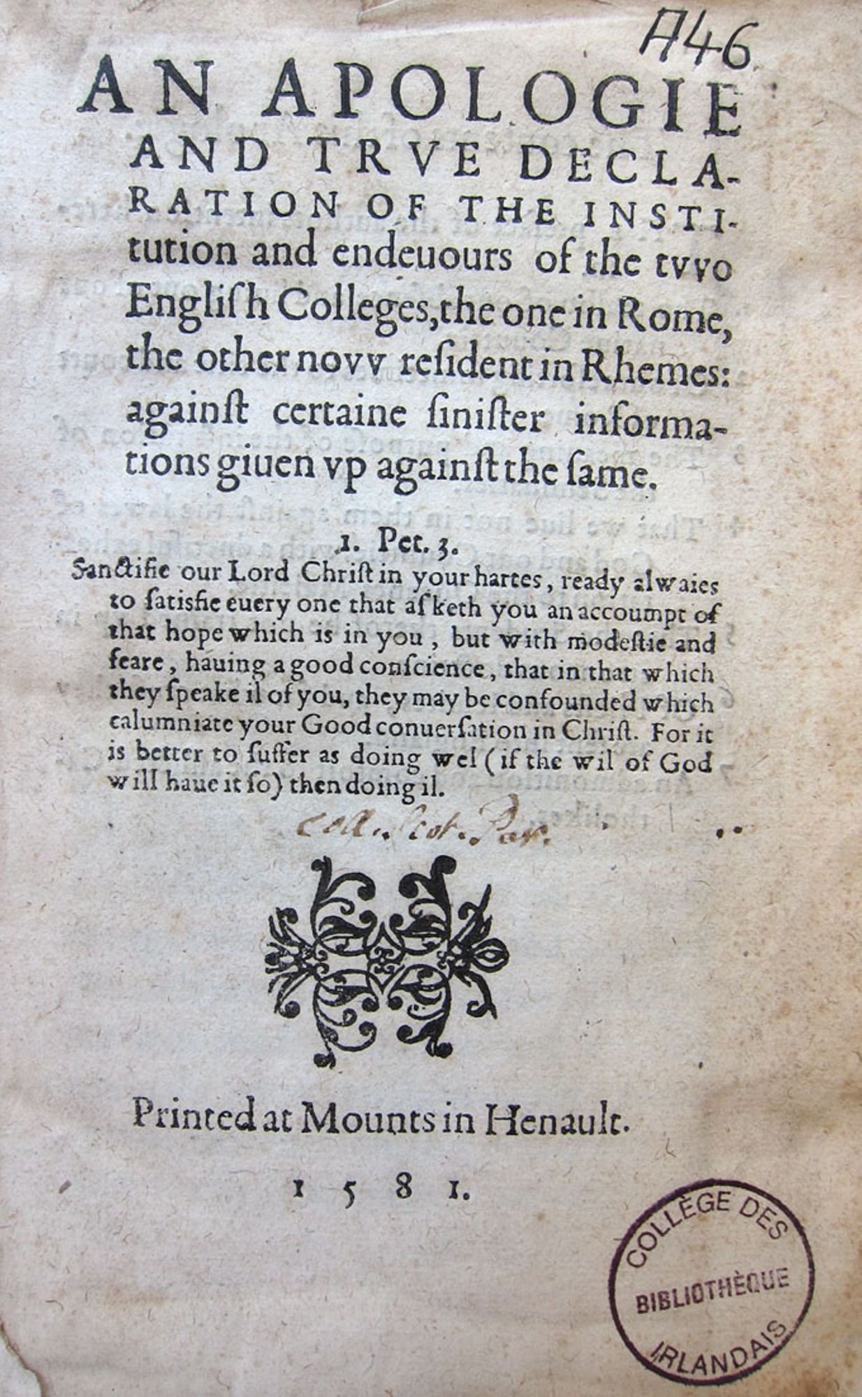 Des catholiques exilés d'Angleterre, d'Irlande et d'Écosse fondèrent des collèges en France (et notamment à Paris), en Espagne et dans d'autres pays européens. Ils œuvrèrent pour convaincre et reconquérir les cœurs et les esprits dans les Trois Royaumes. William Allen, Robert Persons, Henry Fitzsimons et bien d'autres érudits émérites entamèrent un travail de longue haleine pour instaurer une version nouvelle de l'Église catholique dans ces trois pays. Cette initiative se heurta à bien des oppositions. Elle rencontra une résistance acharnée de la part des écrivains protestants, aussi fermement convaincus de la justesse de leur foi que leurs homologues catholiques.