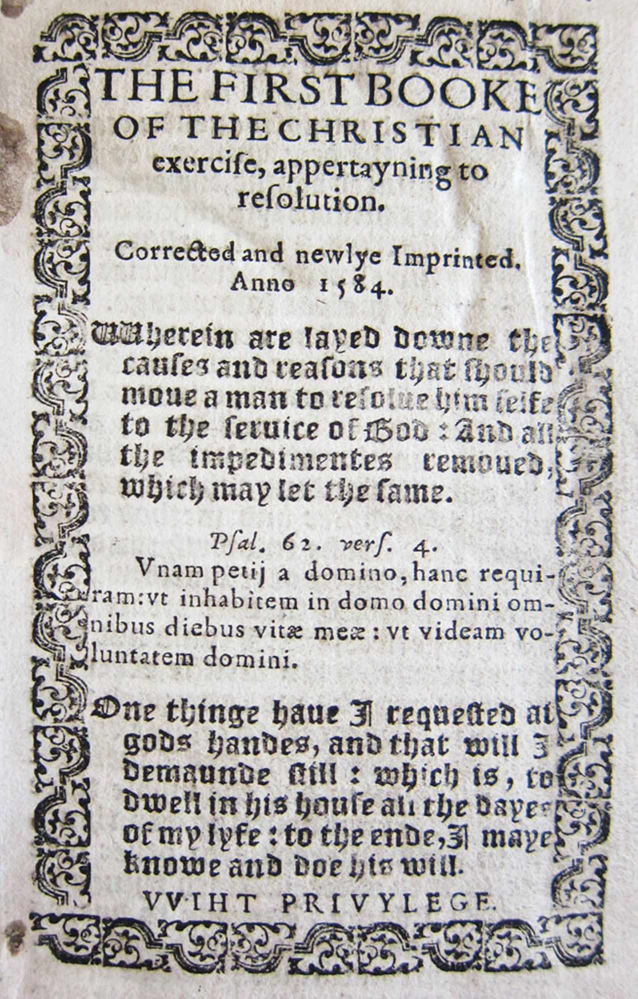 Robert Persons (1546-1610) apporta son assistance à son compatriote William Allen dans nombre de ses entreprises, mais il était, avant tout, écrivain. Grâce à son style littéraire flamboyant, son First book of the Christian exercise appertayning to resolution, publié à Rouen en 1582, rencontra un succès immédiat. Il fut réimprimé sous le titre de A Christian Directory guiding men to their Salvation (Rouen, 1585) puis de The Christian Directory guiding men to eternal salvation, divided into three books (St-Omer, 1607). Ce guide spirituel menant au salut devint l'une des œuvres de dévotion les plus influentes, même dans des pays à dominante protestante.