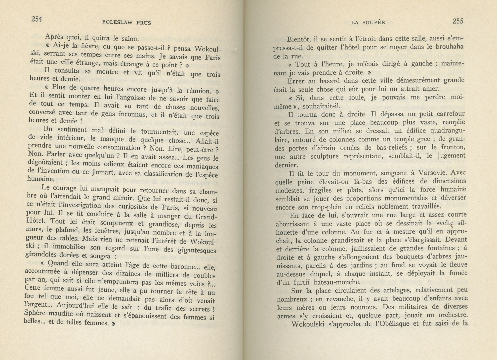 Quand je me demande pourquoi ce roman extraordinaire « Lalka » (« la Poupée » 1890) de Bolesław Prus est si peu connu, si peu lu en Occident, la première réponse qui apparaît inévitablement concerne les langues dites de diffusion restreinte. Peu importe que le polonais soit la plus ancienne langue littéraire slave, avec une riche littérature de la Renaissance datant de la période où la Pologne était le plus grand pays d'Europe - une langue qui possède également le plus grand poète romantique dans toutes les langues (il figure de manière significative dans « la Poupée »).