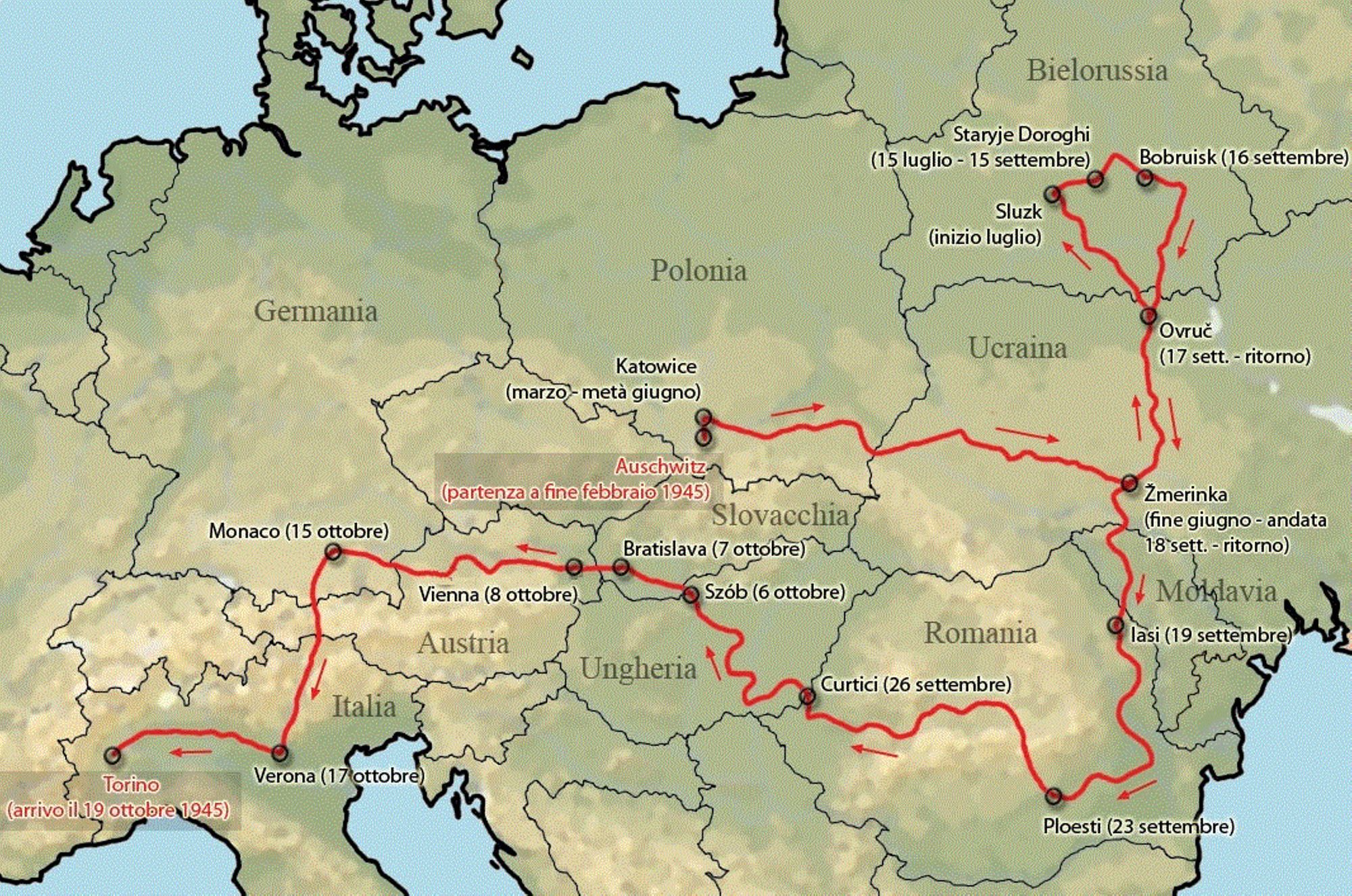 Le train poursuivait lentement son voyage. Le soir, on vit des villages sans lumière, en apparence déserts; puis une nuit totale, atrocement glaciale tomba, sans aucune clarté ni dans le ciel ni sur la terre. Seuls les cahot du wagon nous empêchaient de glisser dans un sommeil que le froid aurait rendu mortel. Après d'interminables heures de voyage, vers trois heures du matin, peut-être, nous nous arrêtâmes enfin dans une petite gare ravagée et obscure. Le Grec délirait: les autres, soit par peur, soit par pure inertie, soit dans l'espoir que le train repartirait bientôt ne voulurent pas descendre du wagon. Je descendis et marchai dans le noir avec mon bagage ridicule jusqu'au moment où je vis une petite fenêtre éclairée. C'était la cabine, bondée, du télégraphe. J'entrai avec circonspection comme un chien errant, prêt à disparaître au premier geste de menace, mais personne ne fit attention à moi. Je me jetai par terre et m'endormis sur-le-champ, comme on apprend à le faire au camp.