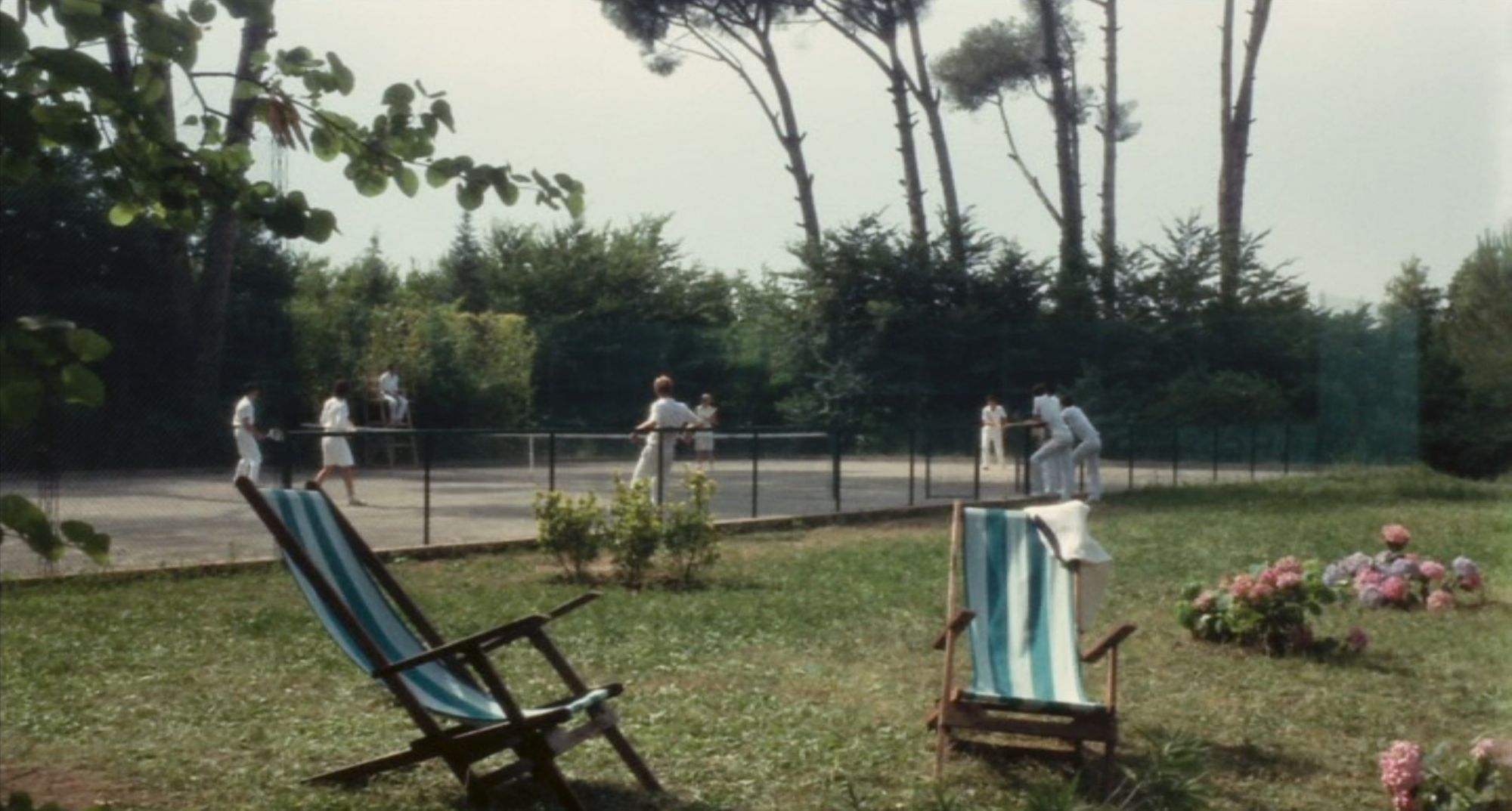 Nous eûmes vraiment de la chance avec le temps. Pendant dix ou douze jours, il se maintint au beau fixe, s’immobilisant dans cette espèce de suspension magique, d’immobilité doucement vitreuse et lumineuse qui est particulière à certains de nos automnes. Il faisait chaud dans le jardin : comme si l’on eût été en plein été. Ceux qui en avaient envie pouvaient continuer de jouer au tennis jusqu’à cinq heures et demie et plus, sans crainte que l’humidité du soir , déjà si forte vers novembre, n’endommageât les cordes des raquettes. À cette heure-là, naturellement, on n’y voyait presque plus sur le court. Mais la lumière qui dorait encore là-bas, au fond, les pentes herbeuses du rempart des Anges, pleines, surtout le dimanche, d’une paisible foule multicolore […], cette dernière lumière vous invitait à continuer, à persister à échanger des balles et peu importait que ce fût maintenant presque à l’aveuglette. Ce n’était pas encore la fin du jour et cela valait en tout cas la peine de rester encore un peu. […] Nos hôtes étaient encore plus assidus que nous. On pouvait arriver très tôt, quand deux heures n’avaient pas encore sonné à la lointaine horloge de la ville : si tôt que l’on arrivât, on était sûr de les trouver déjà sur le court et jamais en train de jour ensemble, comme ce premier samedi où nous avions débouché dans la clairière, derrière la maison, où se trouvait le court, mais en train de vérifier si tour était en ordre, le filet en place, le terrain bien roulé et arrosé, les balles en bon état, ou bien étendus sur deux chaises longues, avec de grands chapeaux sur la tête, prenant un bain de soleil, immobiles. En tant qu’hôtes, ils n’auraient vraiment pas pu mieux se comporter. Bien qu’il fût évident que, pour eux, le tennis, considéré comme simple exercice physique, comme sport, ne les intéressait que jusqu’à un certain point, ils restaient là néanmoins jusqu’après la dernière partie (presque toujours tous les deux, et toujours l’un ou l’autre), sans jamais prendre congé d’avance sous le prétexte d’un engagement, de choses à faire ou d’un malaise. Parfois, c’étaient même eux qui, dans l’obscurité à peu près totale, insistaient pour que l’on fasse « encore quelques balles, les dernières ! » et qui ramenaient sur le court ceux qui étaient déjà en train de le quitter.