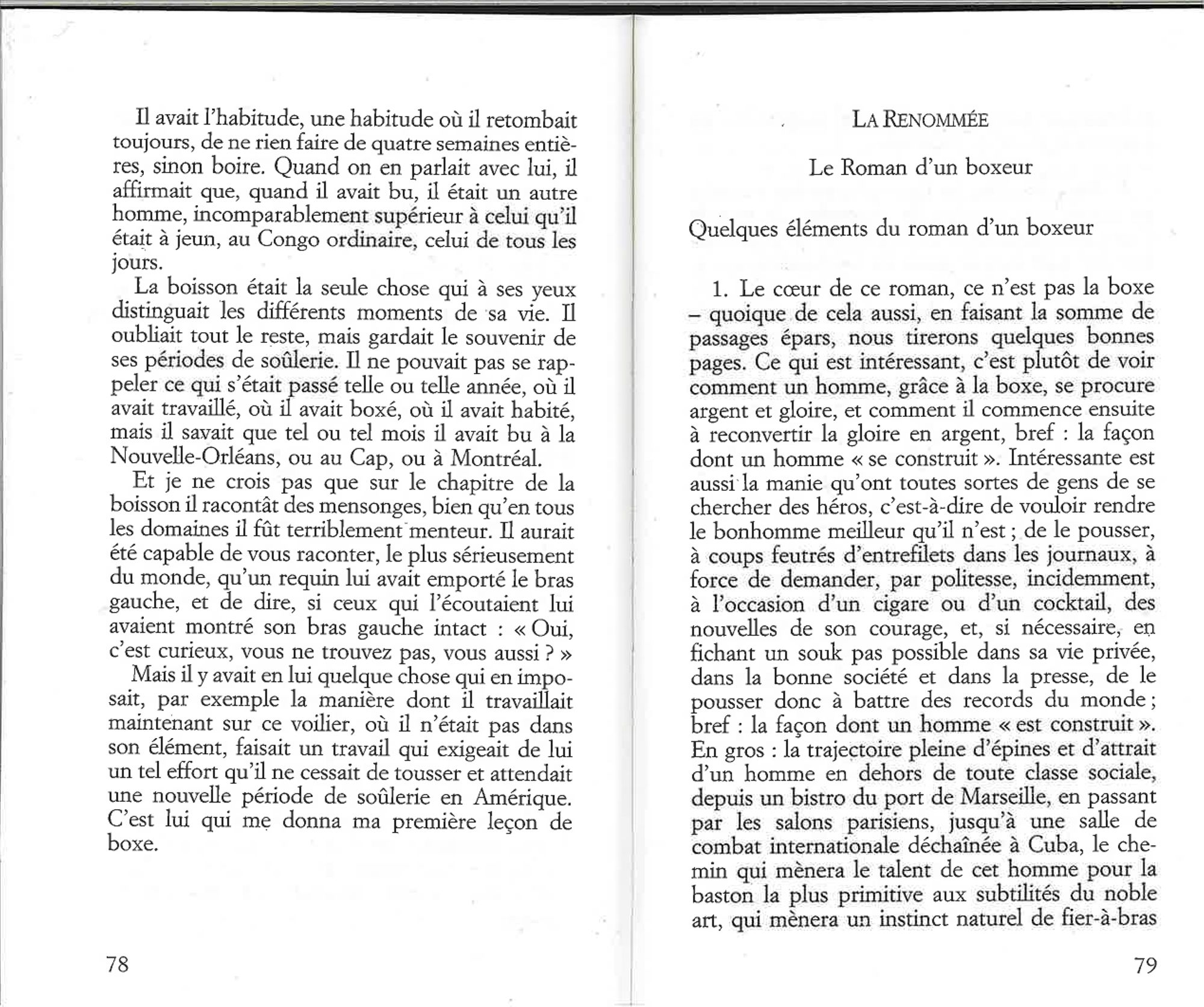 La boxe passe pour brutale et irrationnelle. Des visages ensanglantés, des hommes titubant sous l'impact d'une droite, tombant par terre parce que l'adversaire les a mis knock-out par un crochet violent, ce mélange répugnant entre la chair et le sang, divulgué à tout-va par la télévision, a façonné notre idée de ce sport. En déduire qu'il s'agit, par principe, d'une folle obscénité, c'est certainement aller un peu trop vite en besogne. De fait, la boxe est un sport de combat très ancien. Nous savons qu'on la pratiquait déjà 1500 ans avant J.-C. en Crète. Donc : qu'il se batte celui qui veut se battre, à condition de respecter les règles et de trouver un adversaire consentant. Demandez à l'ombre d'Edith Piaf, à l'architecte Tadao Ando ou au sociologue Loïc Wacquant, initié à la boxe dans un ghetto noir de Chicago. La boxe, comme tous les grands sports, n'est pas un douteux divertissement. La boxe exige une discipline du corps et de l'esprit, de l'esprit comme partie du corps. Elle est une explication sur « scène » et donc proche du théâtre. Elle ne pouvait pas ne pas intéresser le jeune Brecht. Dans le Berlin des années 20, il fréquente rings et boxeurs. Le combat de boxe devient pour lui une métaphore de l'existence, qui parcourt toute son œuvre, jusqu'à la fin.