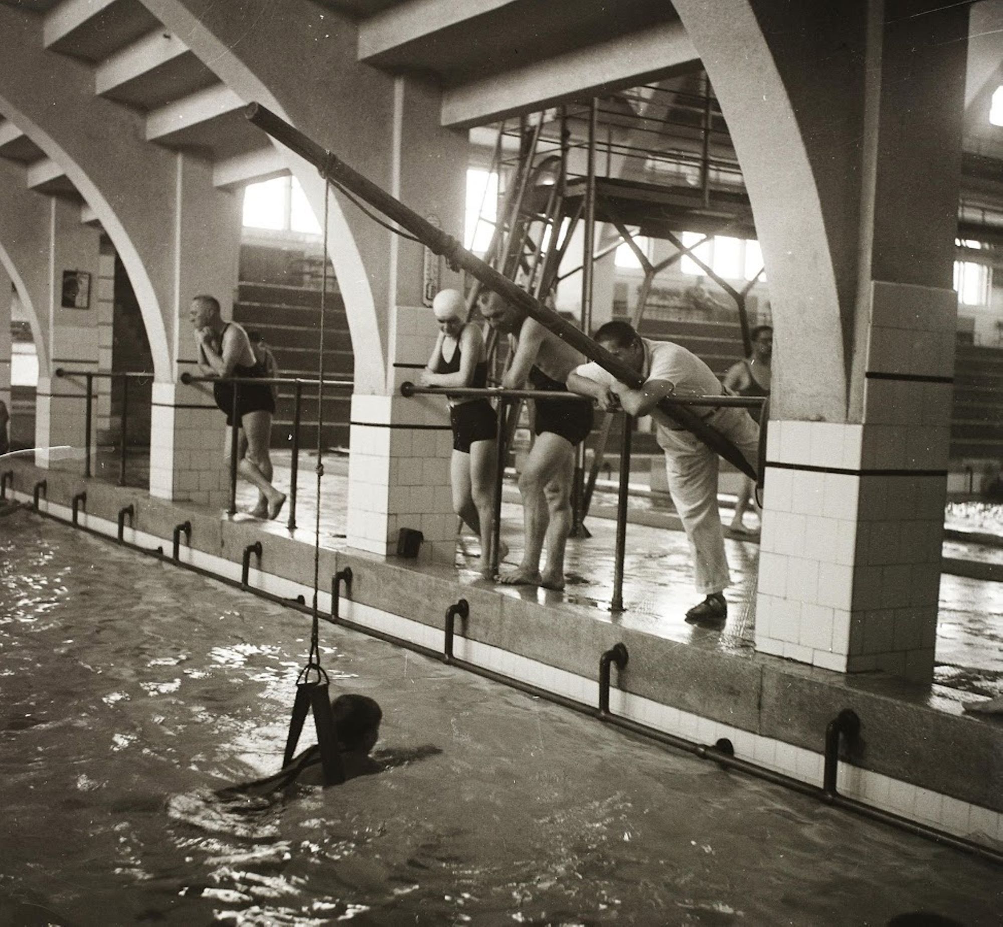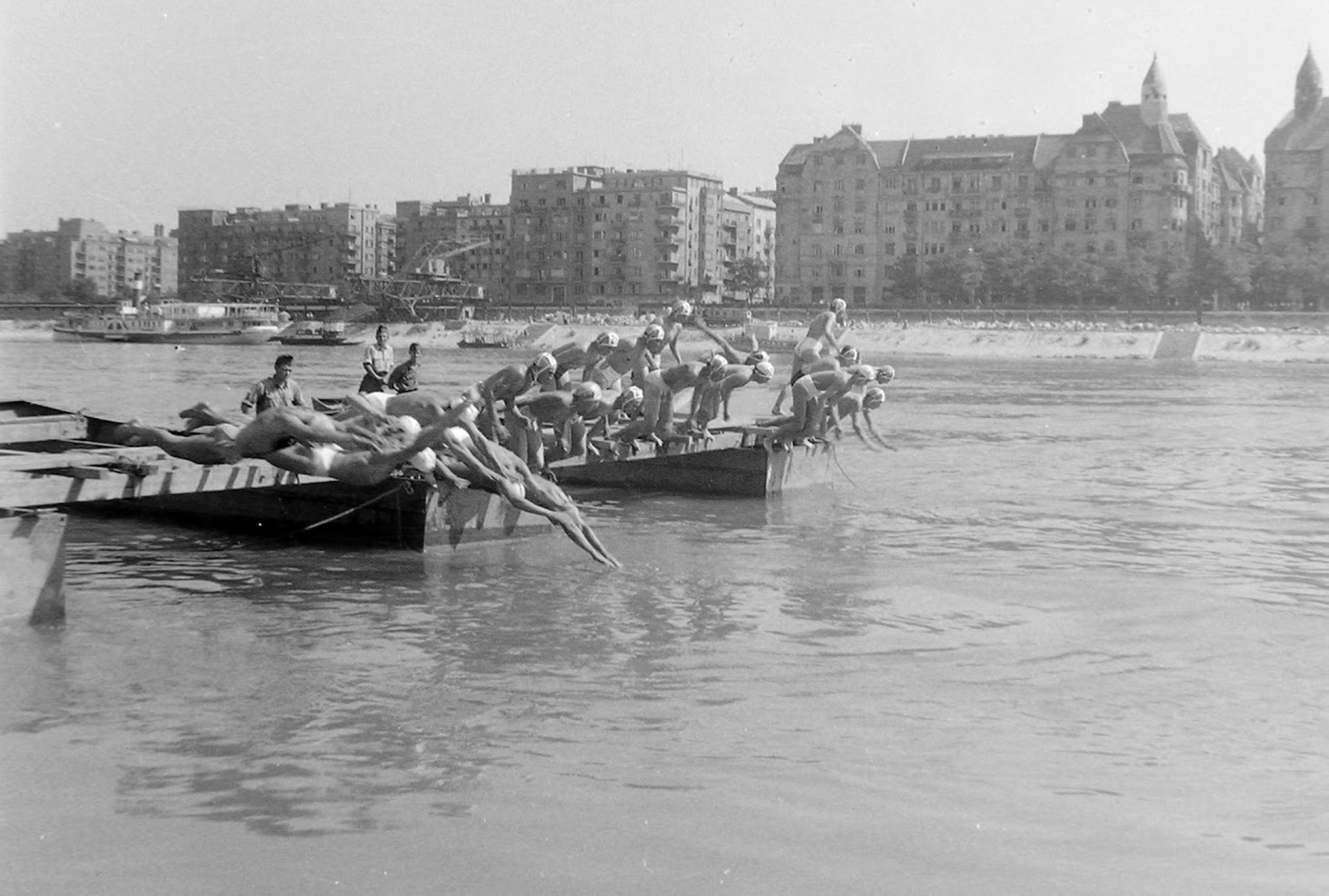 En général, on considère la natation et la course à pied comme des sports d’endurance, par opposition aux exploits sportifs sur place tels que le saut en hauteur, la boxe et le discours parlementaire. Cela signifie que, en parlant d’un endroit quelconque, il faut arriver à un autre endroit quelconque, aussi vite que possible pour un être humain. Et c’est là que le malentendu commence. A savoir que, mis à part les poissons et les hydrophiles, il existe un grand nombre de machines inventées par l’homme qui, même sous leur forme la plus primitive, avancent plus vite dans l’eau que le plus grand nageur de tous les temps ; qui plus est, pour peu qu’on y prête attention, on s’aperçoit que n’importe quel animal évoluant dans l’eau va plus vite que les nageurs de compétition.